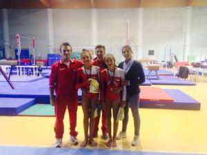 Trecate - Domenica 4 ottobre, presso il Pala Pacchiotti di Torino, si è tenuta la 1^ prova del Campionato Regionale Gafdi serie C1 – C2 – C3 A/B, competizione a squadre sui quattro attrezzi (trave, corpo libero, volteggio e parallele). La polisportiva trecatese ha partecipato con due agguerrite squadre: una composta da Gaia Iacometti e Valentina Palazzo per la C2 e una formata da Michela del Gobbo, Laura Valentino e Carolina Venegoni per la C3/A. Queste ultime hanno condotto una buona prestazione, conquistando la 10^ posizione su 18 squadre partecipanti. Gaia e Valentina, invece, si sono classificate al 5° posto su 14; buon risultato che, tuttavia, lascia un po’ di amaro in bocca se si considera che le due agoniste avrebbero raggiunto il podio se non fosse stato per due fatali cadute.Sempre insieme ai loro istruttori Laura ed Enrico, con Chiara, impegnata come giudice a parallele. A tutte e cinque le atlete vanno i consueti complimenti del presidente di sezione dott. Mario Devecchi e della vice dott.ssa Arianna Boggero. Aspettiamo l’8 novembre, data della 2^ prova regionale, per vedere i nuovi risultati delle ginnaste biancorosse.