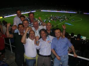 Novara - Un'emozione da vivere con gli amici più cari e da raccontare ai... nipoti. Nella finalissima dei play-off vinta dal Novara contro il Padova al Piola, valida per la conquista della serie A c'era anche un folto gruppo di trecatesi nell'area ospitality del main-sponsor Cortini. Nella foto il momento della festa finale, con il tripudio di bandiere azzurre sugli spalti e i giocatori del Novara a fare il giro del campo per ringraziare del gran calore e tifo ricevuto dal pubblico.