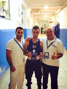 Il settore agonistico sarà impegnato ancora con l'atleta Yuri Sampirisi (60 kg elite) che domenica 8 Giugno salirà sul ring di San Donato Milanese (MI) contro Leonardo Faretina (Pugilistica Ottaviano Tazzi). Il match sarà una rivincita dopo lo spettacolare pareggio dello scorso 18 maggio. Nella foto: Yuri Sampirisi dopo il match di Marina di Massa (MS) con i tecnici Giuseppe Virton e Rocco Manisi