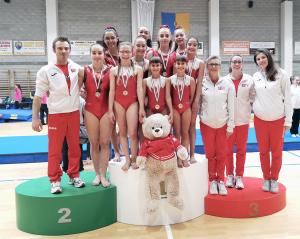 Trecate - Prosegue con successo il Campionato di Serie D, di cui si è svolta la II Prova Regionale nel weekend dell’11-12 maggio, presso lo SportCube di Cameri. Si parte sabato 11 con il livello LA3, dove di la squadra di Ilenia Cangialosi, Beatrice Confessore, Greta Ferrari e Laura Marcotti conquista il 4º posto su di un totale di 28 squadre partecipanti. Domenica 12 è poi la volta del livello LB, per il quale le Allieve biancorosse portano in casa UST un’ottima medaglia di bronzo: il merito è del team di Gloria Cerina, Izabela Marincoiu, Emma Oldani, Alessia Pavani e Viola Valentino. Buoni risultati, con una 6^ posizione, anche per Matilde Calcaterra, Benedetta Geddo e Sara Peverali (cat. Junior/Senior). Chiudono in bellezza il fine settimana agonistico due meritatissime medaglie, oro e argento, conquistate rispettivamente dalle formazioni di Noemi De Luca, Alessandra Discacciati, Camilla Pitton, Martina ed Eleonora Villani (LC cat. Allieve – 1° posto in classifica assoluta) e di Giulia Duca, Gaia Fenderico, Gioia Fior, Laura Valentino e Carolina Venegoni (Livello LD cat. Junior/Senior – 2° posto in assoluta). Tutte le atlete della polisportiva trecatese (accompagnate in campo gara dagli istruttori tecnici Rachele Devecchi, Silvia Gavioli, Laura Martinelli ed Enrico Corciolani), grazie alle buone gare condotte ed ai risultati ottenuti, ottengono di diritto il passaggio alla fase nazionale che si terrà a giugno a Rimini. In bocca al lupo!