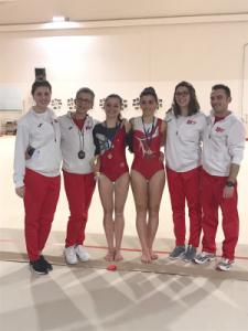 Trecate - Prima prova del Campionato Individuale Silver FGI (livelli LC - LD) in calendario sabato 1° febbraio a Biella; presenti con i tecnici Laura Martinelli, Rachele Devecchi, Silvia Gavioli ed Enrico Corciolani ben 25 ginnaste dell’A.D. U.S. Trecatese, che hanno gareggiato sui quattro attrezzi, suddivise per categoria d’appartenenza nella ‘Zona Tecnica’ che ha visto riunite tutte le squadre del Piemonte. Tra i vari risultati, citiamo in primis i podi conquistati con grinta e determinazione: per il livello LC in classifica assoluta oroa Gaia Fenderico (cat. S1) e a Camilla Pitton (A3); nel livello LD3 medaglia d’oro a Glenda Fior (S2); per il livello LD troviamo sul 1° gradino del podio Giorgia Mazzola (J3) e Giorgia Guagliumi (S2) – segue l’argento di Giulia Franco (A3) e i bronzidi Eleonora Villani (A3), Noemi De Luca (A4) e Gioia Fior (J3). Hanno condotto buone prove anche le altre ginnaste che pur non sono salite sul podio: Gaia Bertani, Gloria Cerina, Sofia Dimarco, Giulia Giacalone, Laura Marcotti, Izabela Marincoiu, Alessia e Nicole Pavani e Viola Venegoni (livello LC); Giorgia Fornara, Carolina Re e Sofia Schirò (livello LC3); Alessandra Discacciati, Azzurra Esposito, Sara Peverali e Laura Valentino (livello LD).