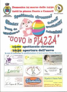 Cameri - Seconda edizione per la manifestazione “Uovo in piazza” organizzata dal Comune di Cameri, assessorato alle politiche giovanili, e dalla Pro Loco Cameri. Domenica 24 marzo a partire dalle 14.30 in piazza Dante ci saranno giochi, pony da cavalcare, scivoli gonfiabili, animazioni ed uno spettacolo circense per far passare a grandi e piccini una giornata di festa ed allegria. Inoltre alle ore 16.30 verrà scartato un mega-uovo da 10 Kg con distribuzione gratuita ai presenti. In caso di cattivo tempo la manifestazione avrà luogo all’area mercato.
