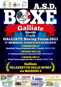 Sabato 4 e 5 marzo ritorna la grande boxe a Galliate e lo fa in grande stile, infatti il sodalizio galliatese celebrerà all’interno della 1^ tappa del Galliate Boxing Forum 2023 il 4° Memorial “Gianfelice Guarlotti” che purtroppo è stato interrotto negli ultimi 3 anni per via della pandemia. Una full immersion di due giorni dedicati alla nobile arte, sabato sera dalle 21 gli incontri di eliminatorie del Torneo Regionale élite 1-5 match che vedrà contrapporsi diversi pugili in arrivo da tutto il Piemonte, la kermesse pugilistica proseguirà domenica mattina a partire dalle 9:30 con il 1° Criterium Regionale Giovanile 2023 valido per la qualificazione alla Coppa Italia. L’evento si chiuderà domenica pomeriggio a partire dalle 15 con le finali del Torneo Regionale élite 1-5 match e quelle del Torneo Esordienti élite, schoolboy, junior e youth.