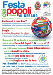 La giornata di domenica proporrà musica, danze, testimonianze, giochi per i bambini, degustazioni e mercatini benefici. "Non mancheranno – sottolinea don Sorrenti – due momenti dedicati alla spiritualità: la messa internazionale per le persone di fede cristiana in mattinata e la preghiera interreligiosa per la pace a conclusione della manifestazione". I gruppi e le associazioni coinvolte nell’iniziativa sono numerosi. "Ringraziamo – conclude Verpilio – tutte le persone, italiane e straniere, che ci hanno aiutato ad organizzare la manifestazione, le scuole, le associazioni ceranesi che ci aiuteranno a far conoscere meglio il nostro paese e le associazioni di volontariato che operano a favore dei paesi poveri. Un ringraziamento speciale, infine, al Comune di Cerano, senza la cui collaborazione la festa non sarebbe stata possibile". Si ricorda che le varie iniziative sono aperte a tutti e ad ingresso libero.