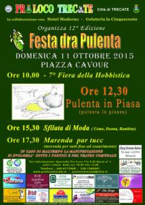 Trecate - La Pro Loco Trecate organizza la 12^ edizione della “Festa dra Pulenta” domenica 11 ottobre in piazza Cavour. Alle 12.30 comodamente seduti si potrà gustare polenta e stufato d’asino, polenta con formaggio fuso, pane di meliga con gorgonzola e per finire gelato alla polenta e gorgonzola, al costo di 10 euro ovviamente è compreso anche il bere. Dal mattino saranno presenti stand di hobbisti che producono e vendono i propri articoli, nel pomeriggio sfilata di moda. Maggiori dettagli li potete trovare su www.prolocotrecate.it o richiederli a prolocotrecate@alice.it o al 347 7331171.