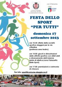 Oleggio - L’Assessorato allo Sport del Comune di Oleggio, in collaborazione con la Consulta Sportiva Comunale e con il Patrocinio del CONI Piemonte, organizza per domenica 17 settembre la Festa dello Sport, evento che si propone di fare da vetrina allo sport cittadino, dalle discipline più classiche agli sport di nicchia. L’obiettivo è di associare al divertimento la voglia di imparare, coinvolgendo i giovani nelle attività sportive, capaci, attraverso lo strumento del ‘gioco’, di insegnare valori quali spirito di cooperazione, senso di appartenenza, rispetto dell’avversario.