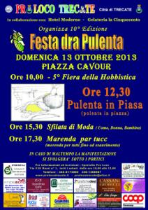 Trecate - La Pro Loco organizza per domenica 13 in piazza Cavour la X edizione della “Festa dra Pulenta” la manifestazione, che riscontra sempre una notevole partecipazione, prevede il seguente programma: alle 10 apertura degli stands degli hobbisti che proporranno le loro opere, a seguire in piazza alle 12,30 si potrà pranzare al costo di € 10, comodamente seduti, polenta con stufato d’asino, polenta con bruscit e piselli (cucinati dal Ristorante Moderno), gorgonzola, biscotti, acqua e vino e poi il gelato alla polenta e al gorgonzola preparato dalla gelateria la Cinquecento. Alle 15,30 è proposta la sfilata di moda in collaborazione con i seguenti negozi: Lui & Lei – Le Simpatiche Canaglie – Cenerentola Fashion –JD Price e Le spose di Katia. Alle 17,30 merenda .