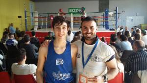 Galliate - Domenica 19 marzo a Grugliasco c'è stato l'esordio per lo Youth categortia 52kg Simone Giangreco; Simone dopo un anno e mezzo di attività in palestra, colmata da tanto impegno e dedizione con la perdita di 18 kg, si è affacciato al mondo dell'agonismo nella finale del torneo regionale esordienti contro il ligure Cannas, vincitore della semifinale. Nonostante la giovane età e la mancanza di esperienza da parte di entrambi, i due atleti sono subito entrati nel vivo del match; il ligure si è portato all'attacco con dei colpi circolari ma Simone, sfruttando il maggiore allungo e mettendo in atto un ottimo lavoro tecnico con colpi lunghi e precisi sul volto dell'avversario lo ha tenuto a distanza, portandosi così in vantaggio al termine della prima ripresa. Durante la seconda ripresa il galliatese ha continuato con il suo "jab" sinistro sul volto dell'avversario fino al primo intervento medico per l'avversario per epistassi nasale; dopo poco il secondo intervento medico che ha sancito la vittoria alla seconda ripresa per il galliatese che si è aggiudicato il suo primo torneo.
