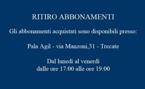 Trecate - La Igor Volley comunica che, in vista della prima gara interna di campionato, in programma sabato prossimo alle 20.30 contro Il Bisonte Firenze, sono già disponibili per il ritiro gli abbonamenti stagionali. Sarà possibile ritirare le proprie tessere presso il Pala Agil (via Manzoni 31, Trecate) dal lunedì al venerdì, dalle 17 alle 19. Gli abbonamenti si potranno poi ritirare anche in occasione della gara interna, in biglietteria. Il consiglio, per evitare lunghe attese sabato, è quello di, ove possibile, ritirare già in settimana gli abbonamenti in sede.