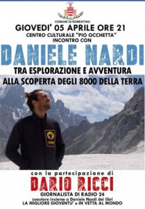 Romentino - Giovedì 5 aprile l’alpinista Daniele Nardi sarà ospite del Comune di Romentino per raccontarsi e raccontare i suoi 8.000, a moderare la serata il giornalista di “Radio 24” Dario Ricci, co-autore con Daniele Nardi dei libri “La migliore Gioventù” e “in vetta al mondo”.