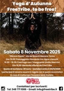 Iscrizioni consigliate entro giovedì 6 novembre scrivendo a info@freetribe.it o al numero 348 7711086