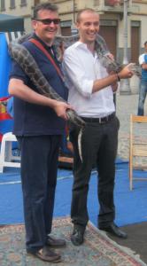 Trecate - Domenica intensa, quella del 22 maggio, a sette giorni dalle elezioni per i due candidati sindaco di Trecate Federico Binatti ed Enrico Ruggerone. Tra una comparsata alle varie feste ed iniziative (San Vincenzo nell'area delle feste, San Martino nella frazione, maialino in via Volta, Lions Day sotto i portici in Municipio e al teatro Comunale, biciclettata con la Pro Loco e teatro dialettale in un cortile privato in via Roggiolo) ecco che il 'cuore' di Trecate, piazza Cavour si è trasformato non solo teatro dei tradizionali gazebo elettorali che da diverse settimane colorano il centro, ma anche un autentico Paese dei Balocchi. E tra gonfiabili, truccabimbi, percorso per mini-Quad, palloncini colorati e zucchero filato, ecco che troviamo un gruppo di fachiri con i loro giochi di magie e i loro serpenti. Quattro esemplari bellissimi da vedere (un po' meno da toccare...), uno dei quali è stato messo sulle spalle proprio di Binatti e Ruggerone. Il pubblico ha apprezzato, applaudito e a bassa voce si è domandato... "ma tra i tre, chi è il vero serpente?". Intanto cresce l'attesa per il confronto che avrà luogo lunedì 23 maggio nel teatro Comunale, condotto dal direttore del Corriere di Novara, Serena Fiocchi. Tale incontro è stato preceduto di tre giorni da una sorta di forum all'interno della redazione di Tribuna Novarese. Enrico e Federico domenica hanno dimostrato moltissimo fair-play tra loro e non hanno mancato di scambiarsi qualche battuta e scherzare: il clima rovente dei giorni scorsi sembra essersi stemperato. Vedremo se anche lunedì sera dal palco in teatro sarà la stessa cosa. Chi volesse accedere al confronto è bene che si muova per tempo: i posti a disposizione sono molto limitati (un centinaio, non di più) e si corre il rischio di avere già il tutto esaurito molto prima dell'inizio del 'duello'.