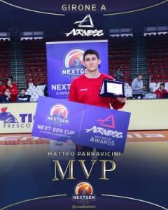 Oleggio - Lo Squalo Matteo Parravicini è stato premiato come Mvp del girone A al termine della prima fase della Next Gen Cup, la manifestazione giovanile che ha visto impegnate nello scorso weekend le 16 formazioni di Under 18 delle società di serie A. Parravicini, che gioca nel settore giovanile della Pallacanestro Varese, contro Brescia e Cantù ha messo a segno 59 punti, mentre non ha giocato la terza partita contro Torino perché impegnato con l’Oleggio Magic Basket nel campionato di serie B. Lo Squalo ha ritirato il premio “Airness Award Next Gen” messo in palio da Airness, official supplier della Lega Basket serie A. Con le tre vittorie Varese si è classificata per le Final Eight che si giocheranno a febbraio a Firenze.