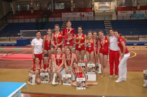 Con l’impegno di sempre unito alla pulita esecuzione tecnica, alcune biancorosse hanno conquistato il podio in tutte le fasce di appartenenza. Oro conquistato da Nadia Milanino e argento da Silvia Gavioli (2^ fascia Gaf). Bronzo conquistato da Claudia Limani e da Martina Cardani (1^ e 3^ fascia Gaf). Mentre le loro compagne Irene, Alice, Alice, Francesca, Stefania, Anna, Silvia, Anna e Rachele hanno raggiunto piazzamenti di tutto rispetto. A fine competizione è stato consegnato il Trofeo Borgini alla migliore società in gara, solo per un punto di differenza dalla prima non è stata l’A.D. U.S. Trecatese ad aggiudicarselo piazzandosi al 2° posto!Insieme ai loro istruttori e al presidente di sezione dott. Mario Devecchi, tutte hanno gioito per i meravigliosi risultati raggiunti.