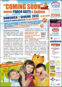 Galliate - Domenica 2 giugno dalle 15 alle 18 evento Coming Soon, una pre-inaugurazione presso il nuovo Parco Gatti a Galliate (No). La nuova struttura, in fase di ultimazione, verrà inaugurata ufficialmente a luglio ed oltre ad ospitare felini in difficoltà, darà il via ad attività di recupero gratuite per bambini disabili. Durante il pomeriggio verranno offerti a tutti assaggi di formaggi della ditta “Igor”, gelati del “Gelatiere” di Novara, pizzette e focacce della pizzeria “Margherita” di Galliate e in più a tutti i bambini sarà data la possibilità di avere palloncini sagomati e l'animazione di truccabimbi, nonché favole gattose e photo-corner, dove il fotografo Davide Ferreri li potrà immortalare in compagnia di personaggi dei cartoons. Il tutto sarà curato dagli anim-attori della Compagnia Teatrale Prove D’Attore di Arona e dalla “Fabbrica d’arte”di Galliate. Durante la manifestazione inoltre ci sarà una dimostrazione di Zumba a cura di “Sonia Zuumba”, un piccolo flash moda di felpe e t-shirt gattose con modelle e modelli d’eccezione reclutati tra i volontari dell’Associazione Amici dei Gatti di Galliate, il mercatino del gattile, la bancarella della moda e quella delle bomboniere miciose, delle torte casalinghe, giochi e divertimento per tutti. Ospiti della manifestazione: rappresentanti della Igor Volley e il campione italiano di Kick Boxing, Stefano Re.