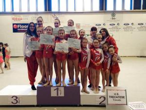 Trecate - Borgo San Martino è un piccolo comune sulle colline del Monferrato e le ginnaste di Ritmica dell’A.D. U.S. Trecatese vi si sono recate lunedì 1° maggio, non per una gita fuori porta, ma in occasione della gara “Io sono Ritmica”. Accompagnate dalle instancabili istruttrici Francesca Pedrinazzi e Anna Frontini (supportate da Laura Pecoraro e Francesca De Santis), le atlete si sono confrontate sul campo gara, sia individualmente, sia in squadra sui vari attrezzi specifici della disciplina. Partiamo con le piccole (divise per categorie), in cui si sono messe in luce per la propria bravura Alessia Porzio 4^ assoluta (su 66 ginnaste) e 1^ al cerchio; Giulia Capoccia e Marta Guarlotti 1° posto a pari merito a fune; Giorgia Pastori 1^ a cerchio. Con loro anche Asia Cheche, Victoria Famà, Alissa Maccarone, Margherita Pilia e Anna Porzio. Tra le più grandi citiamo gli ottimi risultati individuali (sempre divise per fasce d’età) di Valentina Bertaggia oro in classifica assoluta e a palla; Alessandra Fratus argento in assoluta e oro a cerchio; Laura Pecoraro bronzo in assoluta e oro a fune. Con loro anche Martina Migliorato, buona prestazione, sebbene non sul podio. Per la fase a squadre, oro (cerchi e palle) a Tersa Giuca, Gemma Tivari ed Emmza Zanotti Fragonara; oro (cerchi e palle) anche a Stefania Bigogno, Martina Capoccia, Laura Guarlotti ed Erika Pastori; argento (solo cerchi) a Valentina Bertaggia, Alessandra Fratus e Laura Pecoraro. Brave tutte!
