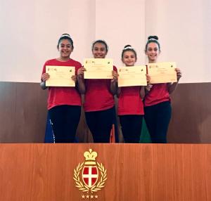 Trecate - Un sabato ricco di soddisfazioni quello del 21 ottobre: 4 ginnaste di Ritmica dell’A.D.U.S. Trecatese sono state infatti premiate presso il centro sportivo di Novarello per essere riuscite a salire sul podio nazionale a Lignano Sabbiadoro, nel campionato CSI della passata stagione sportiva. Grande l’emozione per Giorgia Fornara, Teresa Giuca, Gemma Tivari ed Emma Zanotti Fragonara: oltre all’importante risultato sportivo raggiunto (ricordiamo: bronzo in classifica assoluta), è stata una bella soddisfazione vedere premiati in questa manifestazione i propri progressi e traguardi. Orgogliose naturalmente le istruttrici Francesca Pedrinazzi ed Anna Frontini, presenti con loro insieme a Laura Pecoraro. Complimenti ancora una volta alle atlete, con l’augurio che questo possa essere di buon auspicio per la stagione appena cominciata.
