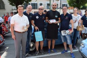 Oleggio - Il 12° Raduno Fiat 500 Club Italia – 500 Novara Laghi 2018 si è tenuto ad Oleggio domenica 15 luglio.Perché proprio luglio per "invadere" la tranquilla Oleggio? Da tempo è stato scelto questo periodo per rendere omaggio al modello nato il 4 luglio del 1957: da lì infatti, Fiat 500 con i suoi 4 posti e 2,97 metri di lunghezza, seppe conquistare le simpatie di tantissimi automobilisti. Il Raduno di quest’anno, organizzato dal Fiat 500 Club Italia – 500 Novara Laghi, ha voluto sottolineare il binomio tra turismo e motori ormai consolidato con la partecipazione, di oltre 100 vetture provenienti da tutto il nord Italia e dalla Calabria. Uno sguardo a Oleggio e dintorni e poi la sosta in viale Paganini, dove un ricco aperitivo (offerto dal Caseificio Palzola di Cavallirio e dal Caffe “Il Verdi) ha rinnovato le energie dei tanti “Fiat cinquecentisti”. Questo 2018 ha visto anche il sessantesimo anniversario della versione Fiat L e della rara Sport. Soddisfatti, della manifestazione, Marco Leonardi, coordinatore provinciale del Club 500 Novara Laghi e Marco Fortina responsabile del raduno oleggese. Al termine dell’incontro Marco Leonardi e Marco Fortina, unitamente al Sindaco di Oleggio Massimo Marcassa, hanno premiato Giacomo Poletti della Palzola, per il sostegno alla manifestazione.
