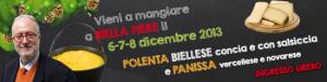 Gaglianico - Polenta biellese contro panissa vercellese (e novarese). Questo il tema del gustoso appuntamento che per tre giorni, il 6, 7 e 8 dicembre, richiamerà a Biella Fiere le folle di buongustai che hanno partecipato al recente Festival Nazionale del Risotto Italiano. La formula è la stessa: ingresso libero e possibilità di scegliere, a prezzi molto popolari, uno o più piatti che, in questo caso, sono i più tradizionali ed amati nelle province di Biella, Vercelli e Novara, abbinabili ai vini e alle birre del territorio. A corollario una serie di stand in cui si compendiano le più significative eccellenze enogastronomiche territoriali all'insegna di "A Natale regala cibo", un modo gustoso ed... economico per farsi ricordare ed amare da parenti amici nella festa più bella, ma quest'anno costretta a fare i conti con la crisi economica che riduce le disponibilità di tutti.
